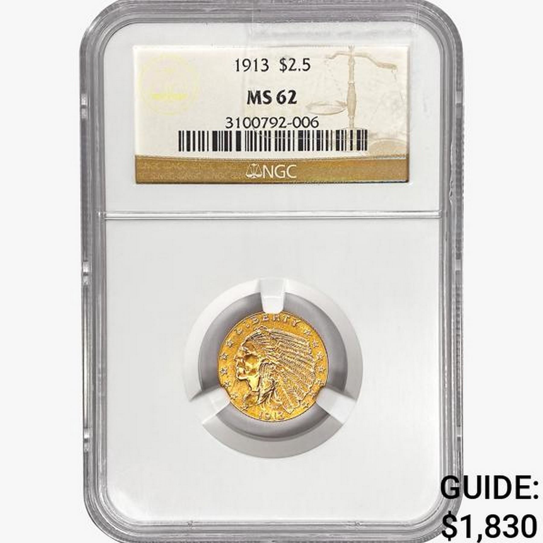 1913 $2.50 Gold Quarter Eagle NGC MS62