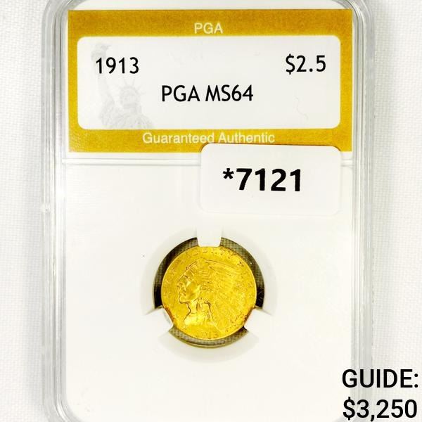 1913 $2.50 Gold Quarter Eagle PGA-MS64
