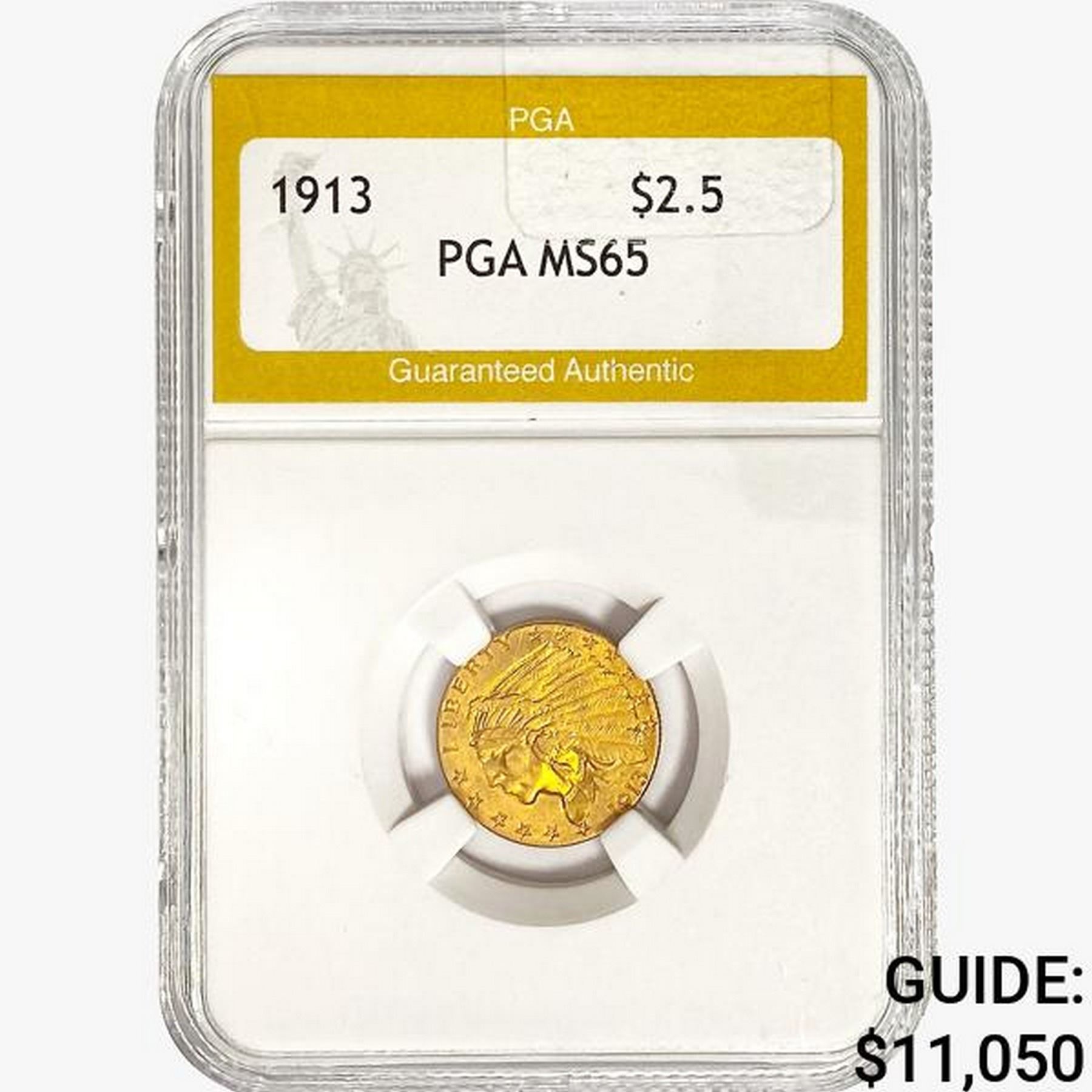 1913 $2.50 Gold Quarter Eagle PGA MS65