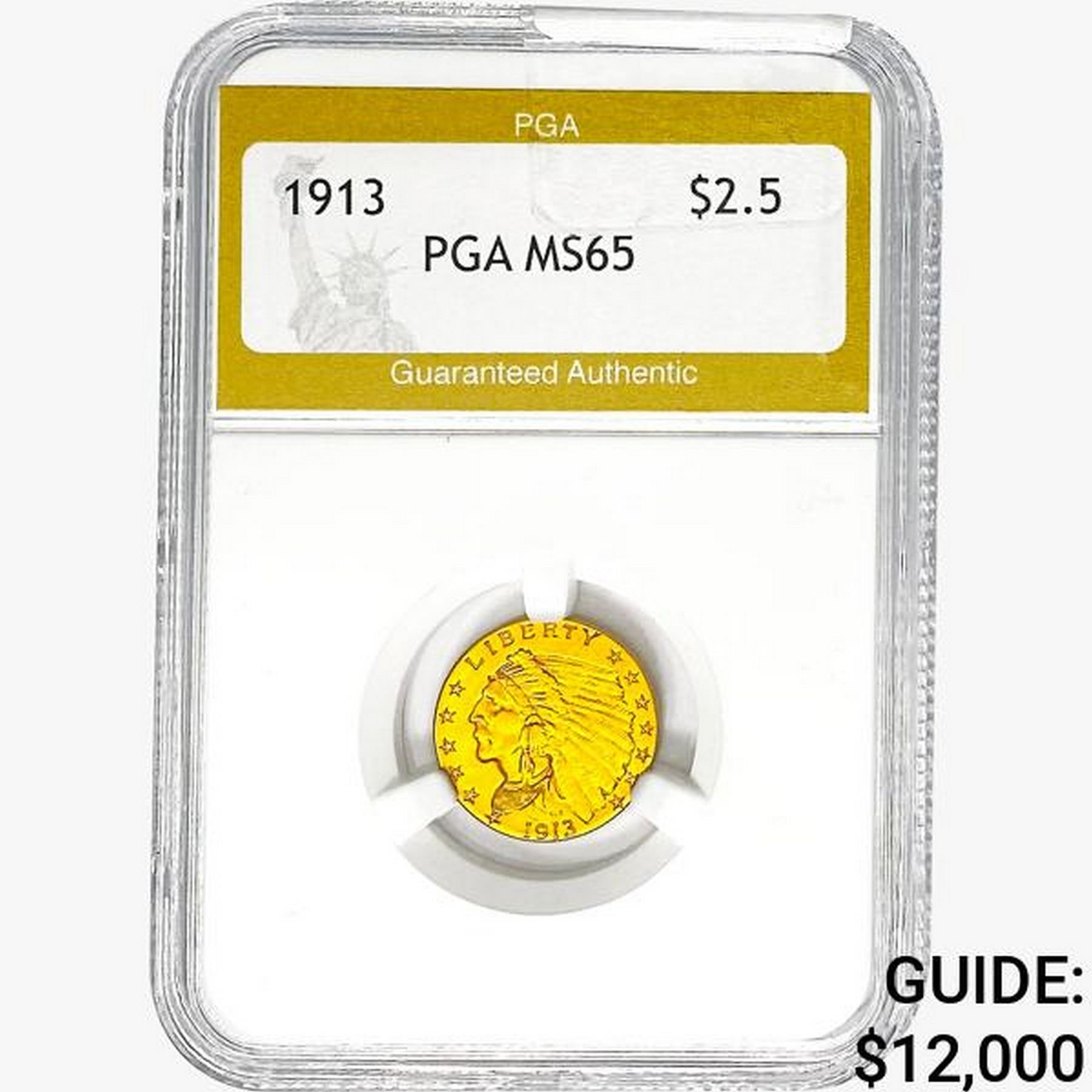 1913 $2.50 Gold Quarter Eagle PGA MS65