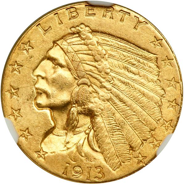 1913 $2.50 Indian. NGC graded MS-62 (PCGS # 7945) .