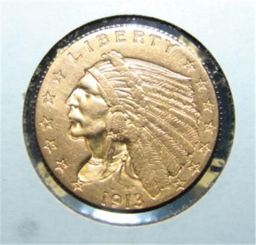 1913 $2 ½ INDIAN GOLD COIN. Unc.