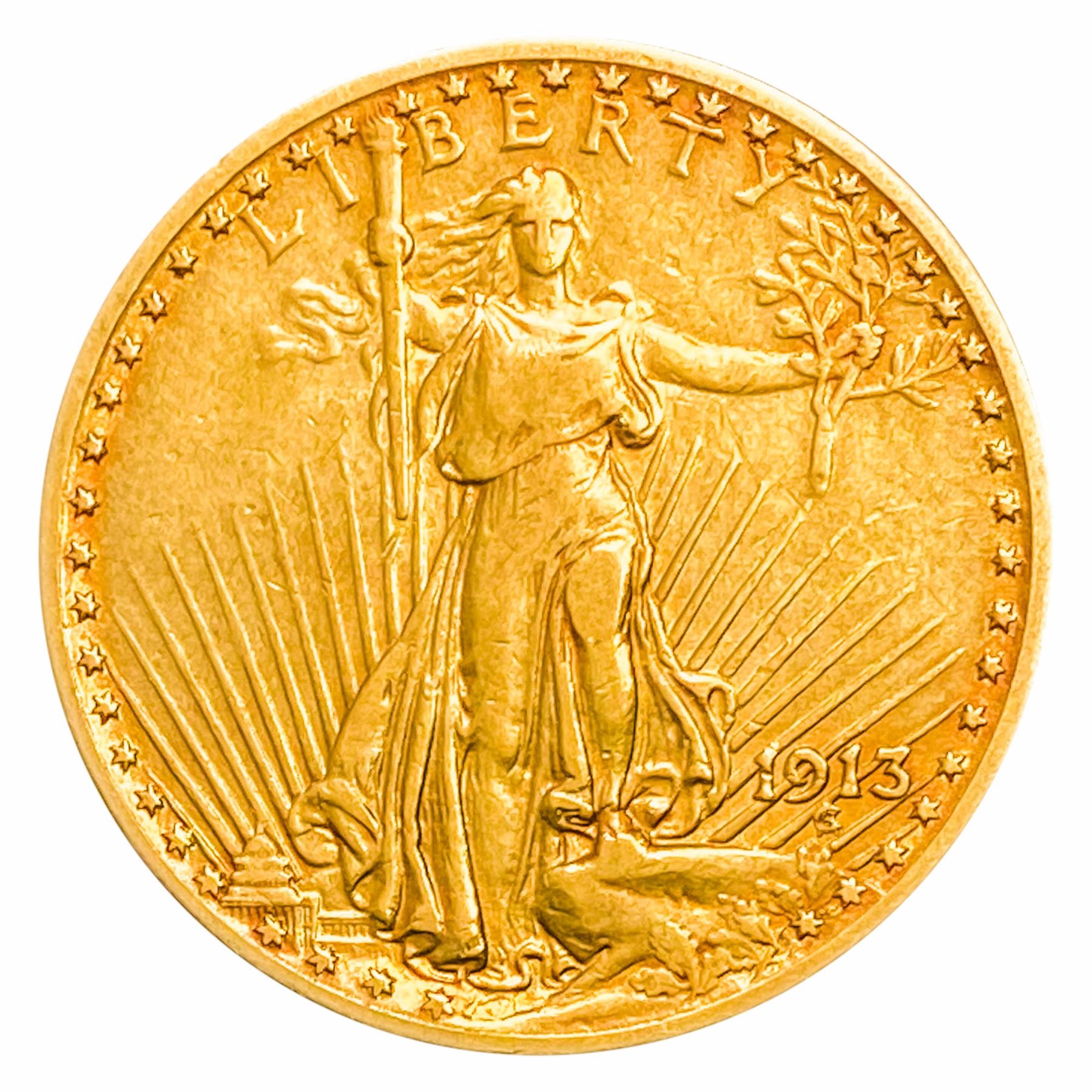 1913 $20 Gold Double Eagle LIGHTLY CIRCULATED
