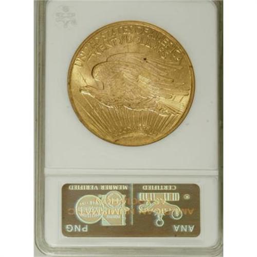 <B>1913 $20 MS62 ANACS.</B></I> Ebullient luster sweeps the moderately abraded surfaces of this lower mintage Saint-Gaudens twenty. Encapsulated in an ANA cache holder.<BR><BR><B>Coin Engraver:</B> Augustus Saint-Gaudens<BR><BR><b>Shipping:</b> Coins & Currency (<a target="_blank" href="http://www.heritageauctions.com/common/shipping.php">view shipping information</a>)