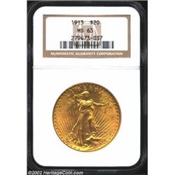 1913 $20 MS63 NGC. A sharply struck and carefully preserved example of this scarce lower mintage iss