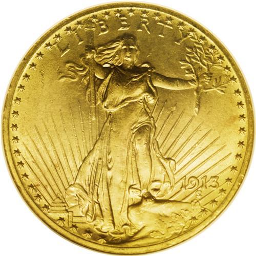 <B>1913<$20> MS63 NGC.</B></I> Lustrous orange-gold surfaces with a bit of light smoky haze. Fairly well struck, with a few undistracting abrasions on each side consistent with the grade. A couple of small dark alloy spots are noted, well hidden in the eagle's feathers on the reverse.