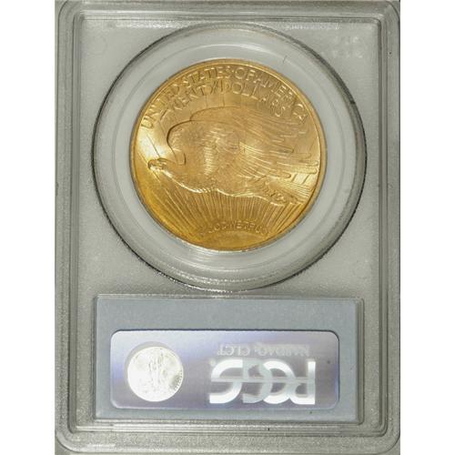 <B>1913 $20 MS63 PCGS.</B></I> Boldly struck and lustrous, with vivid apricot-orange coloration that is imbued with rose and lime-green accents. A few minor abrasions define the grade.<BR><BR><b>Shipping:</b> Coins & Currency (<a target="_blank" href="http://www.heritageauctions.com/common/shipping.php">view shipping information</a>)