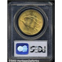 1913 $20 MS63 PCGS. Medium lemon and olive colors ensure the originality of this satiny Saint-Gaudens Twenty. Luster grazes are few in number, although the occasional contact mark precludes a higher grade. The Capitol building is well struck, and the major devices have suitable definition. A tiny alloy spot is found above the W in TWENTY. A scarce issue in Select condition. Important notice: Heritage usually auctions material at the rate of 200-250 lots per hour. On some occasions eBay Live bid software or the Internet may not be able to keep up with the pace of the auction. We recommend placing a realistic absentee bid now as insurance to avoid disappointment. Occasionally the auctioneer may eliminate or reject an eBay Live bid, and the auctioneer may also reopen a lot after the close of the eBay live bidding (usually because we missed an audience bid), and may reject your bid even if it shows you as the winning bidder. By bidding via eBay Live, you agree that Heritage may award the lot to another bidder at its sole discretion under the circumstances described above or any other reasonable circumstances. Also please note that all Heritage lots purchased through eBay Live carry a 20% Buyer's Premium. Please make sure you read the Terms and Conditions before you bid.