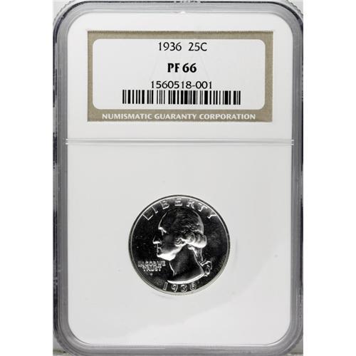 <B>1936 25C PR66 NGC.</B></I> A superlative example of this scarce, low mintage issue. The fields are deeply reflective, a trait that is not always seen on this date. Brilliant throughout and obviously problem-free. Only 3,837 proofs were produced once the mint began producing coins for collectors again after a 20-year hiatus.<BR><BR><b>Shipping:</b> Coins & Currency (<a target="_blank" href="http://www.heritageauctions.com/common/shipping.php">view shipping information</a>)