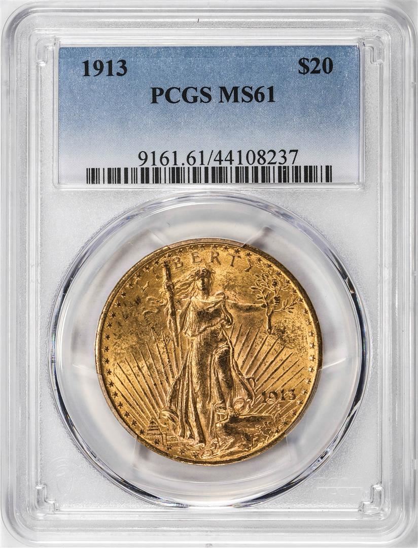 One 1913 $20 St Gaudens Double Eagle Gold Coin PCGS MS61. PCGS Graded.