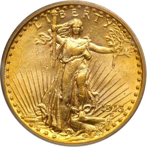 1913 $20 St. Gaudens. PCGS graded AU-58 PQ. Lovely golden toning (PCGS # 9161) .