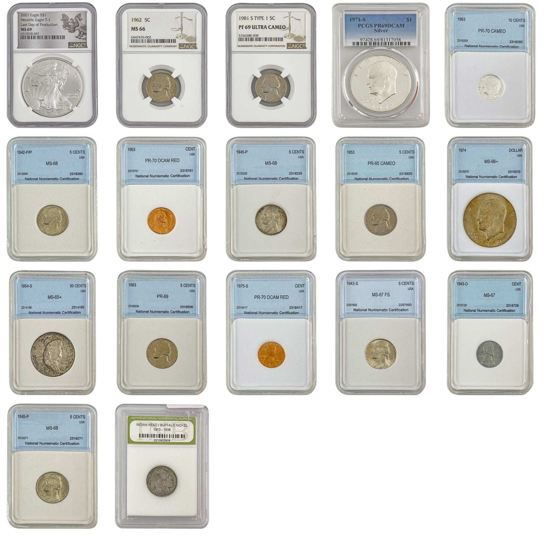 1913-2021 [17] Assorted Certified U.S. Coin Lot