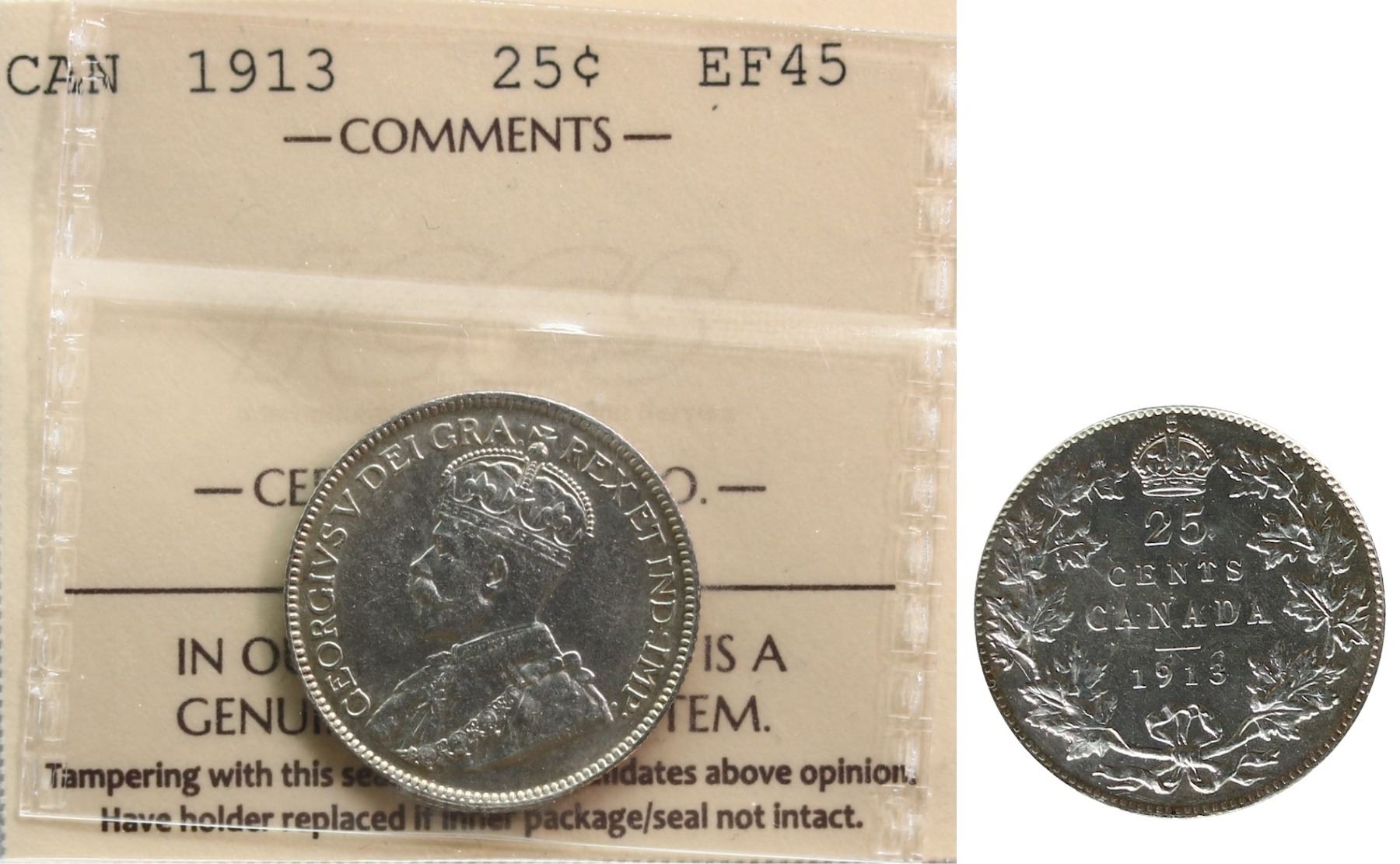 1913 25¢ ICCS Choice Extra Fine-45 Lustrous.