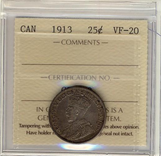 1913 25¢ ICCS VF-20