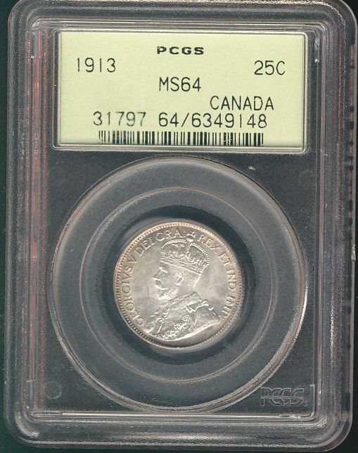 1913 25¢ PCGS MS64. PQ example for grade.