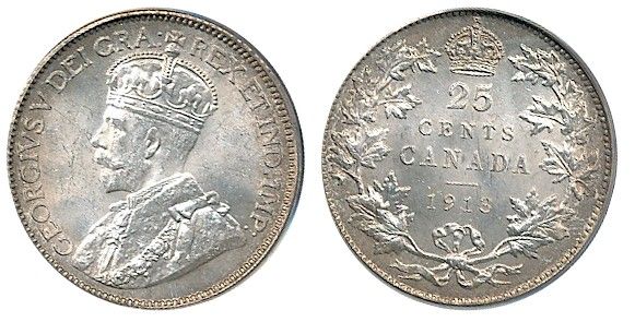 1913 25¢ PCGS MS64. Strong lustrous issue with light gold rim tones.