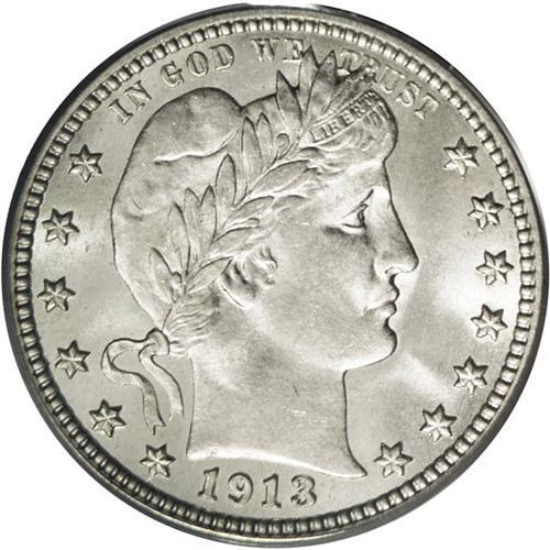<B>1913<25C> MS65 PCGS.</B></I> Although it is overshadowed by the San Francisco Mint issue, the 1913-P quarter dollar is surprisingly scarce, from a low mintage of just 484,000 business strikes. Few of those have survived in Gem quality, as the PCGS population data suggests. This pristine, sharply struck example has fully brilliant silver surfaces with frosty luster. Faint swirls of die polish are visible in the upper reverse field. A lovely example that is seldom seen so fine. Population: 12 in 65, 5 finer (2/06).