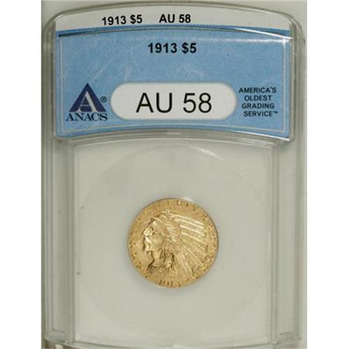 1913 $5 AU58 ANACS. NGC Census: (978/5605). PCGS P