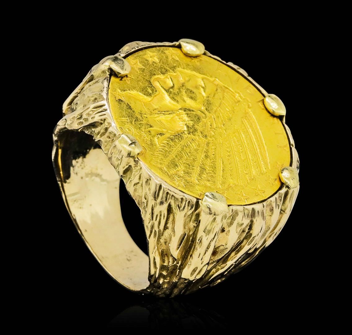 One 1913 $5 Gold Indian in 14K Gold Ring 26.58 Total Grams.