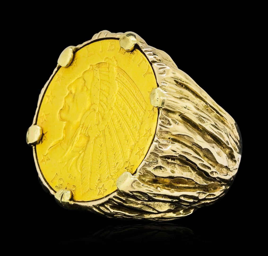 One 1913 $5 Gold Indian in 14K Gold Ring 26.58 Total Grams.