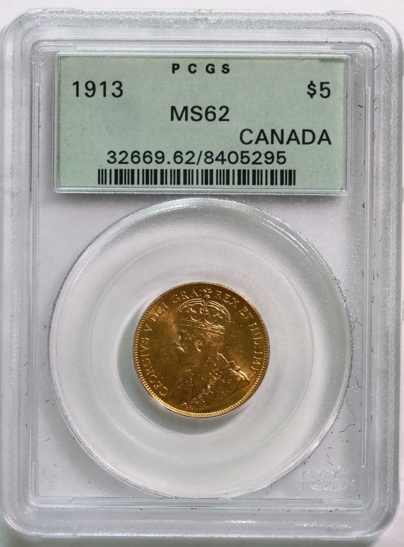 1913 $5 Gold PCGS Choice Mint State-62 Lustrous.