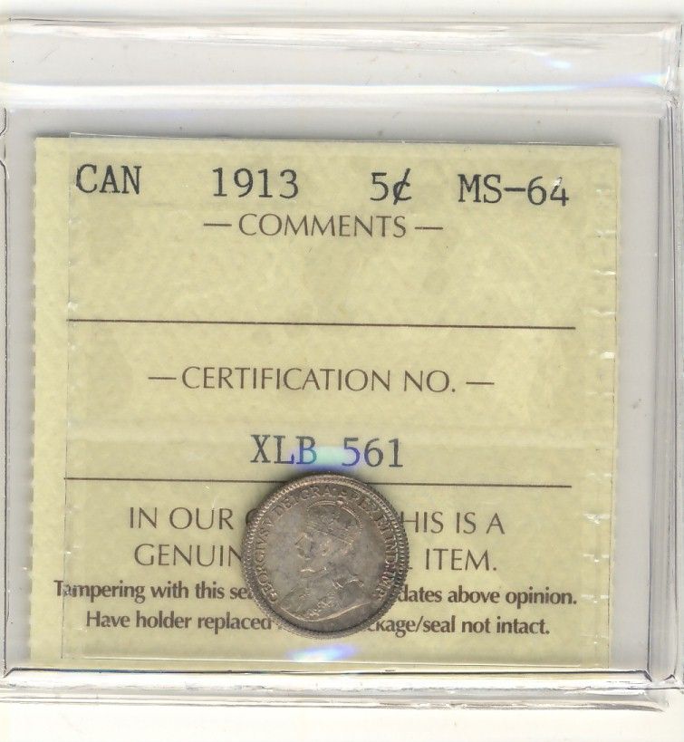 1913 5¢ ICCS MS64. Very attractive shades of pink and gold.