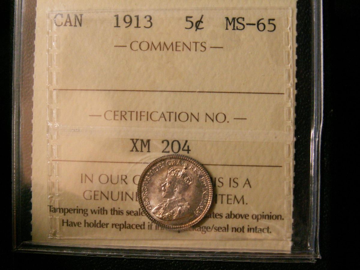 1913 5¢ ICCS MS65. A premium example. Very nice.