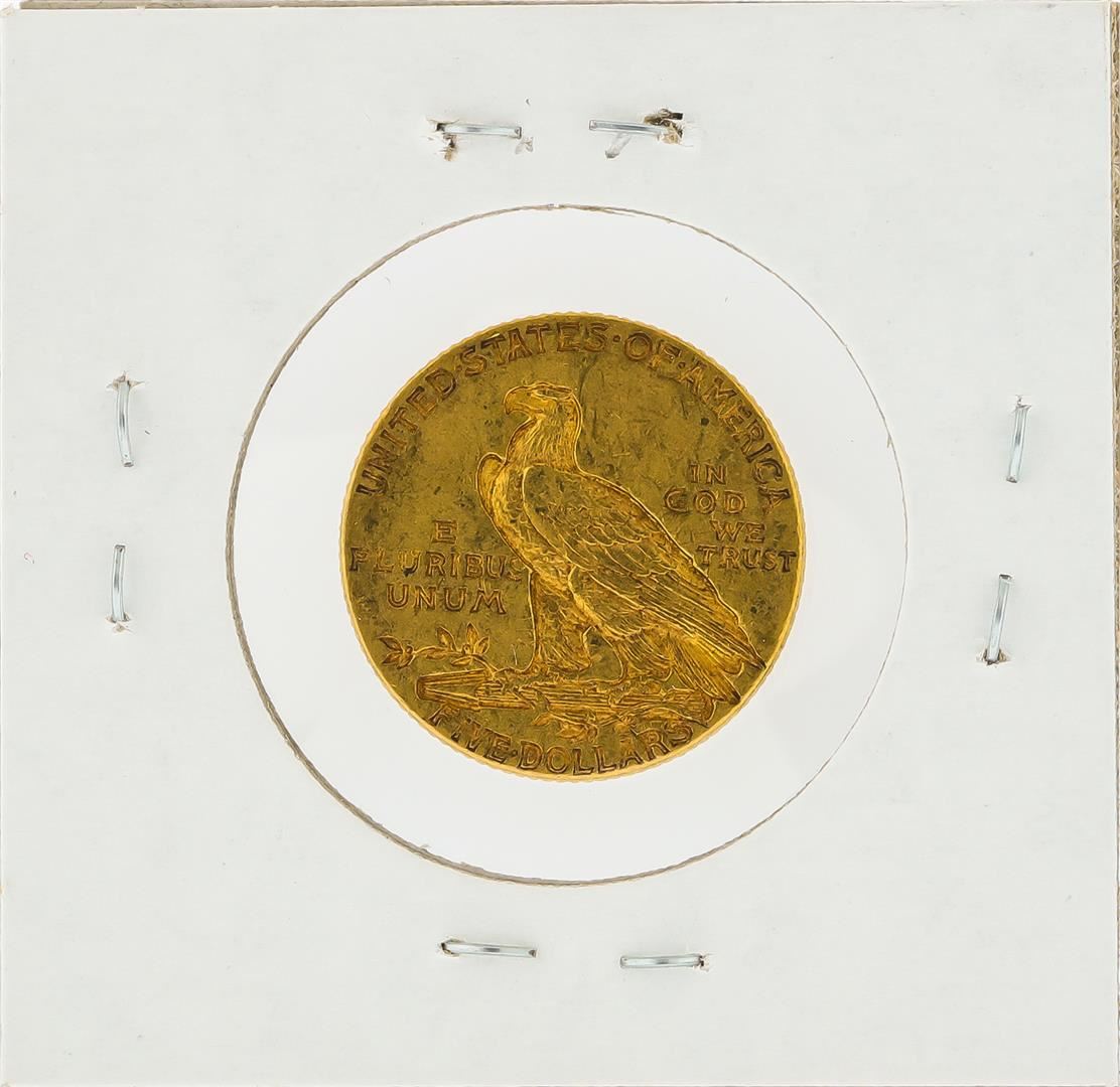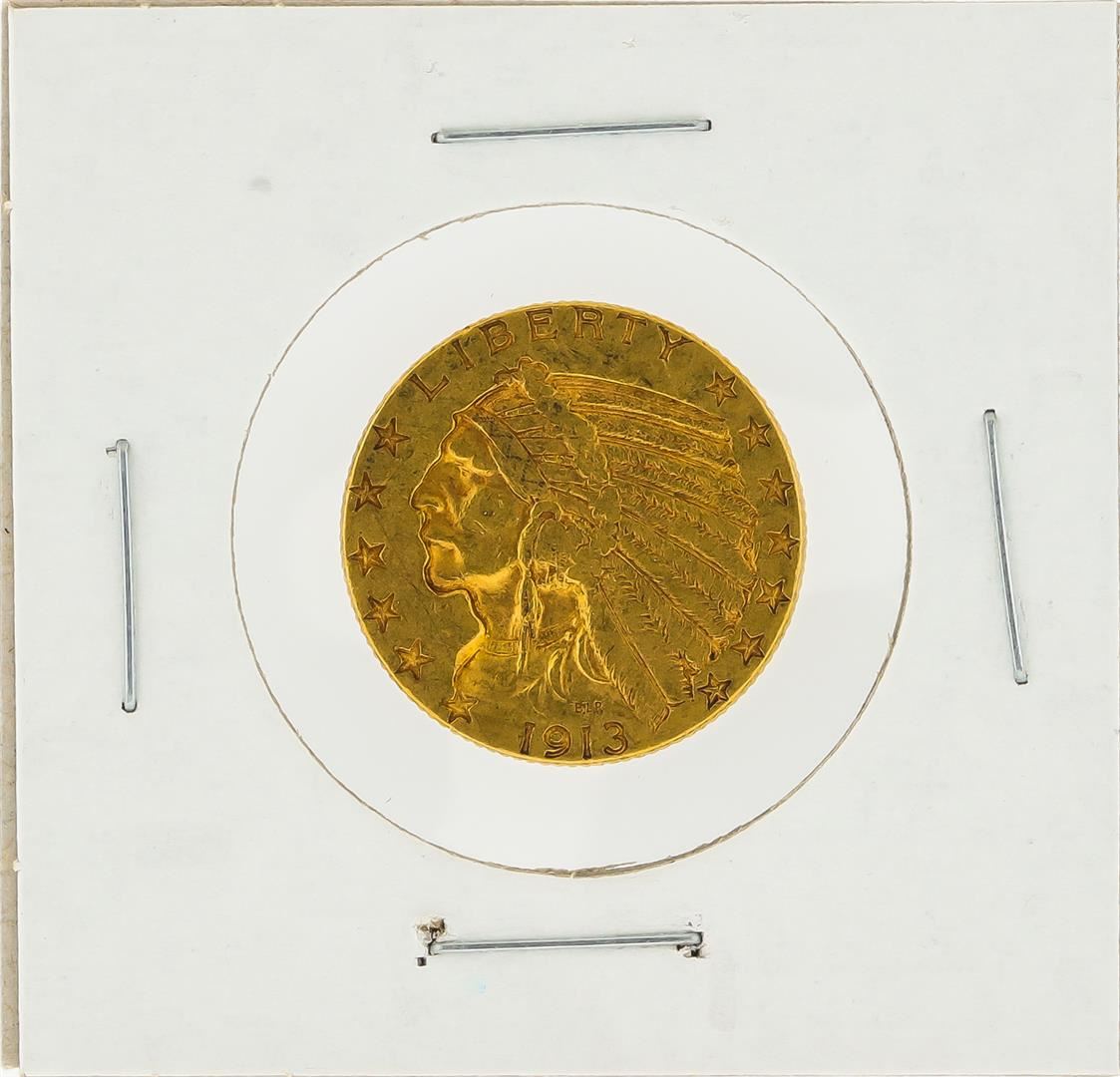 One 1913 $5 Indian Head Half Eagle Gold Coin.