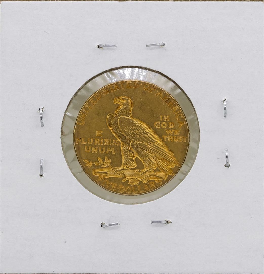 One 1913 $5 Indian Head Half Eagle Gold Coin.