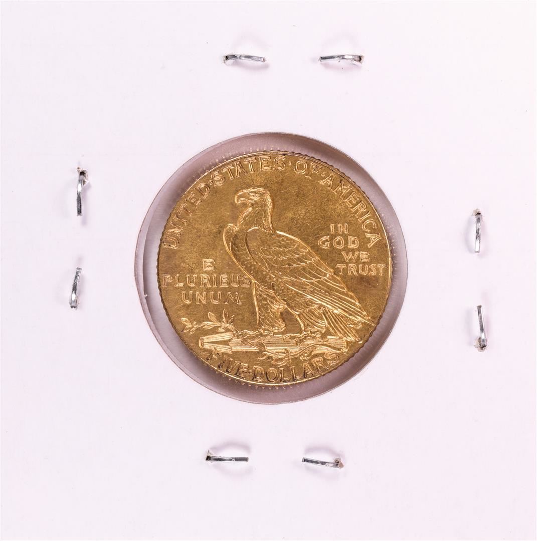 One 1913 $5 Indian Head Half Eagle Gold Coin.
