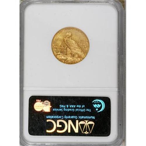 <B>1913 $5 MS62 NGC.</B></I> This yellow-orange piece shows uncommon sharpness for the series, with excellent definition on the Indian's headdress and necklace. While the obverse approaches Select quality, scattered thin abrasions are present in the reverse fields.<BR><BR><B>Coin Engraver:</B> Bela Lyon Pratt<BR><BR><b>Shipping:</b> Coins & Currency (<a target="_blank" href="http://www.heritageauctions.com/common/shipping.php">view shipping information</a>)