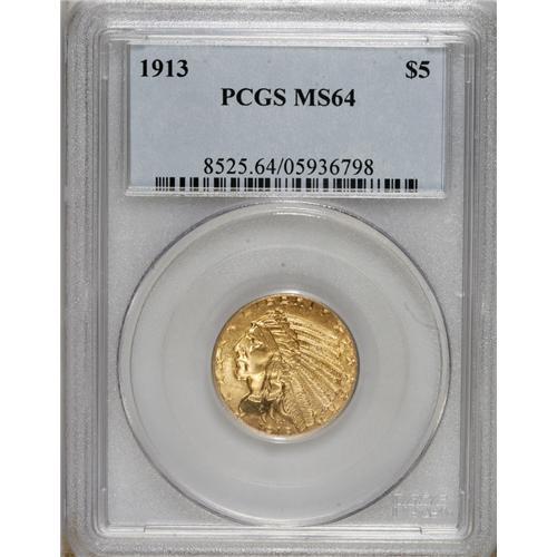1913 $5 MS64 PCGS. With a mintage of 916,000 coins, th