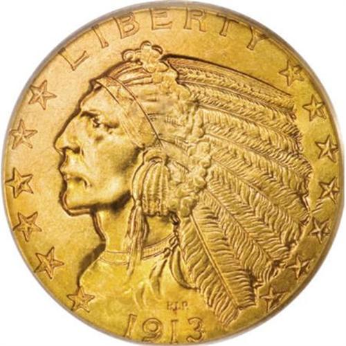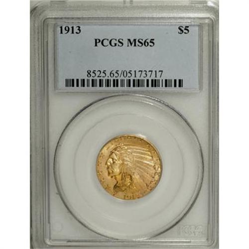 <B>1913 $5 MS65 PCGS.</B></I> The color is a delight on this stunning Gem Indian Head half eagle, ranging from the predominant deep orange-red to pinkish-gold on some of the obverse highpoints. The reverse, with its considerably more open fields, blends in dollops of hazel-gray in the exposed areas. The 1913 is another popular P-mint for collectors seeking a Gem of the Indian Head type, due to its combination of good strike and appealing luster. Such is the case here, with a remarkable paucity of mentionable abrasions complementing the bold impression and generous luster emanating from the deeply colored surfaces. Although PCGS has seen 48 certification events of this issue, only a single piece has surpassed it at that service--one MS66--while NGC has seen six coins at that level (7/07).<BR><I>From The Jim O'Neal Collection of Indian Half Eagles.</B></I><BR><BR><B>Coin Engraver:</B> Bela Lyon Pratt<BR><BR><b>Shipping:</b> Coins & Currency (<a target="_blank" href="http://www.heritageauctions.com/common/shipping.php">view shipping information</a>)