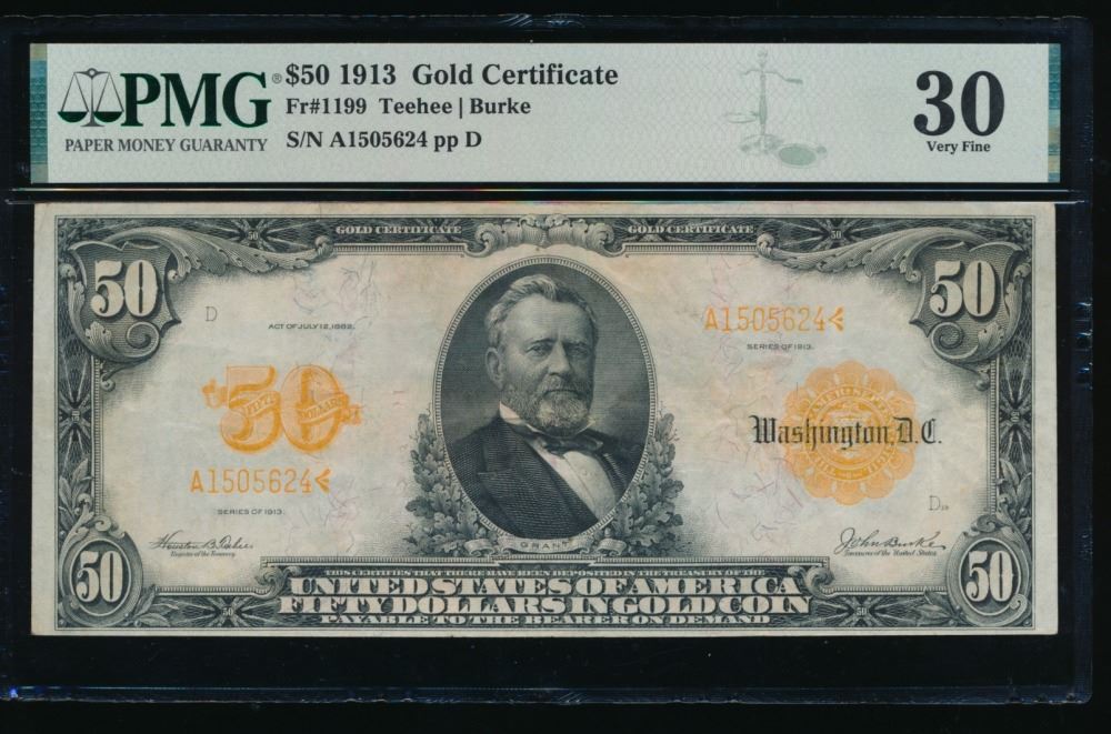 One 1913 $50 Gold Certificate PMG 30.