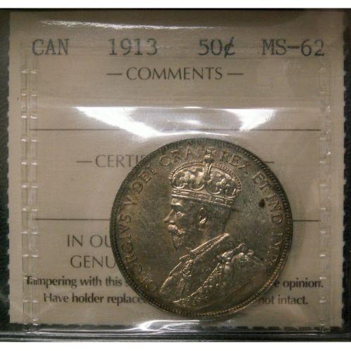 1913 50¢ ICCS MS-62 A nice example with problem free. Lots of lustre