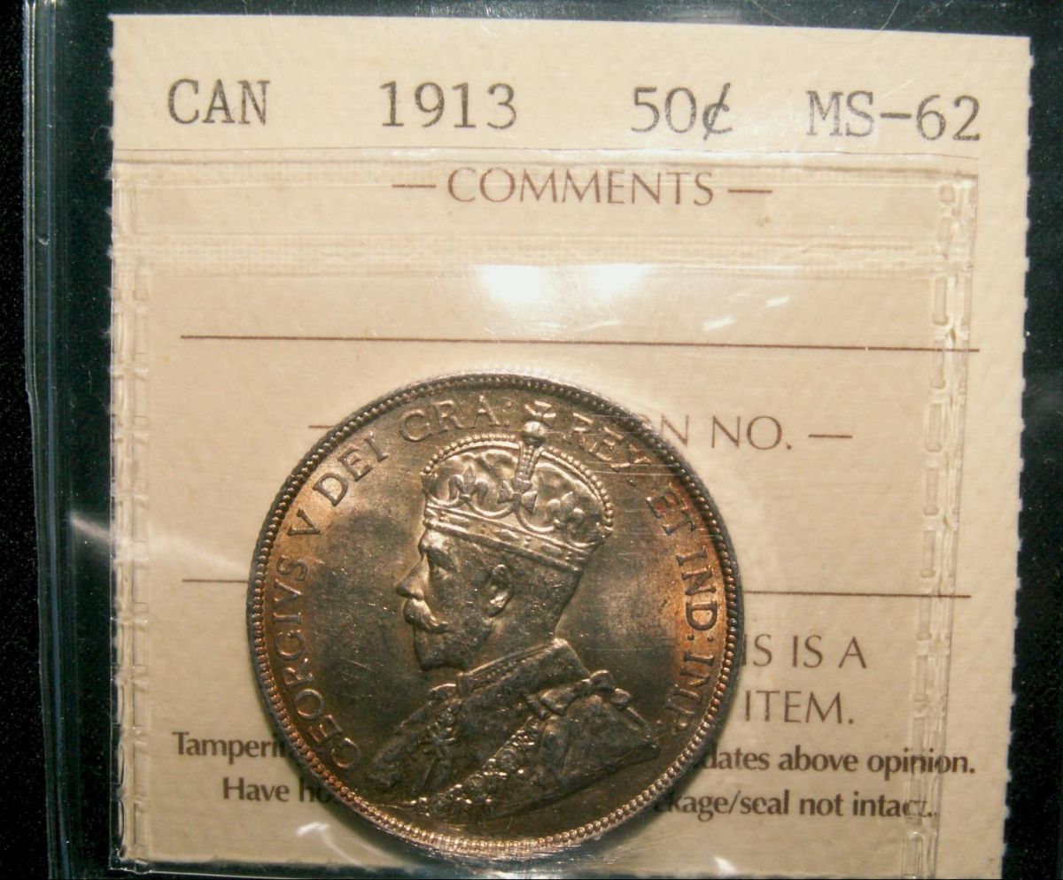 1913 50¢ ICCS MS62. Scarce in mintstate