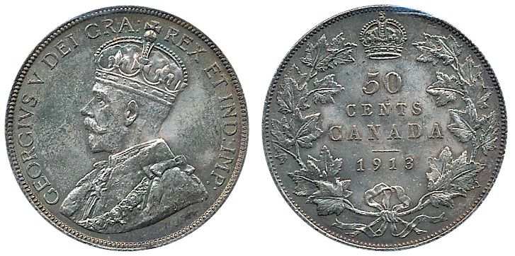 1913 50¢ ICCS MS63. Attractive golds and greens with strong lustre. Very nice eye appeal.
