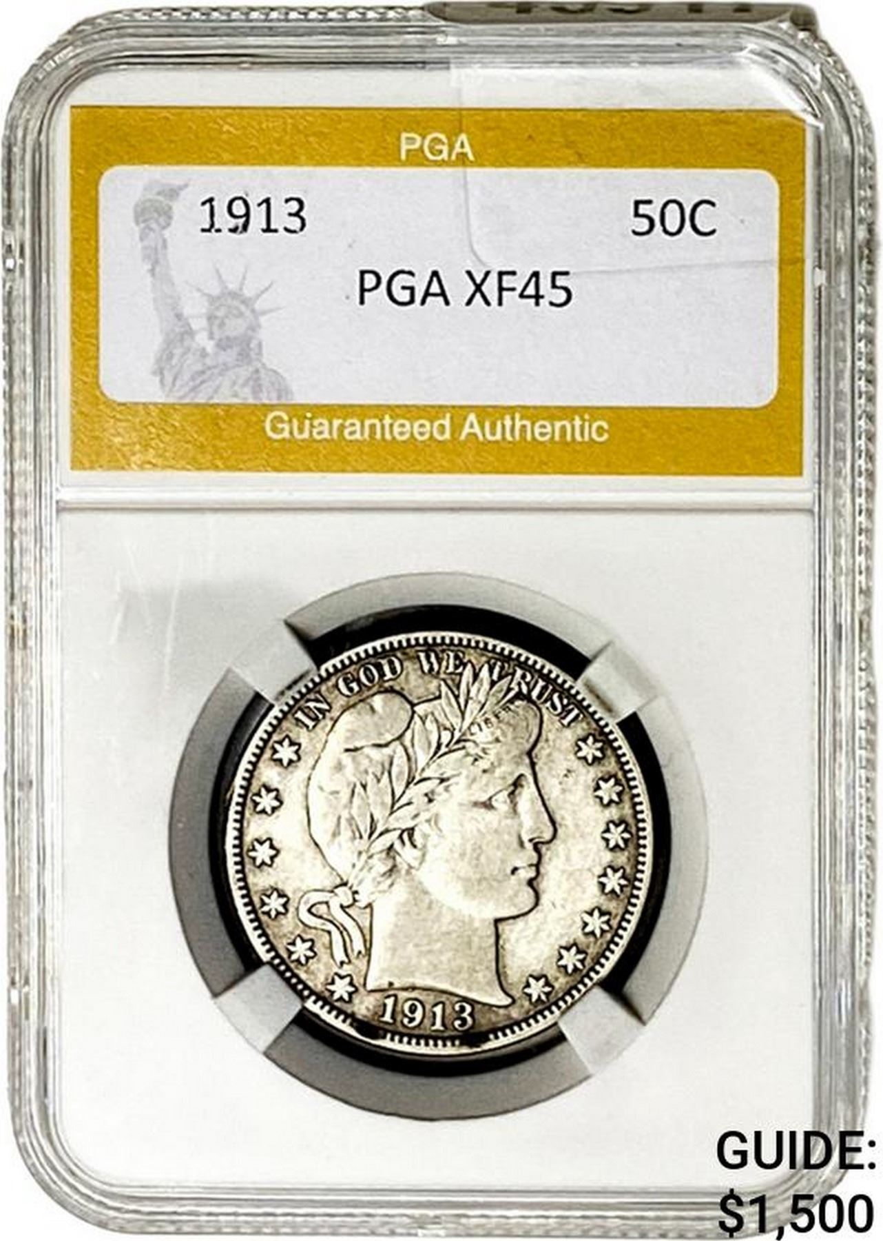 COINS AND CURRENCY LISTED IN GSA’S CATALOG AS GRADED AND ENCAPSULATED BY PCGS, NGC, ANACS, ICG, PCGS CURRENCY, PMG, PCGS BANKNOTE GRADING, CMC OR ANY OTHER THIRD-PARTY GRADING SERVICE ARE LIKEWISE SOLD “AS-IS” EXCEPT AS EXPRESSLY SET FORTH HEREIN. ALL THIRD-PARTY GRADING SERVICE GUARANTEES, INCLUDING AUTHENTICITY, ARE THE SOLE RESPONSIBILITY OF THE THIRD-PARTY GRADING SERVICE AND NOT WARRANTIES OR GUARANTEES OF GSA. BIDDERS SHOULD CONTACT THESE THIRD-PARTY GRADING SERVICES DIRECTLY WITH RESPECT TO ANY CLAIMS OR QUESTIONS THEY MAY HAVE CONCERNING THEIR GUARANTEES AND WARRANTIES. BIDDERS ACKNOWLEDGE AND AGREE THAT AUCTIONEER IS NOT BOUND BY OR LIABLE FOR ANY OPINION OR CERTIFICATION BY ANY THIRD-PARTY GRADING SERVICE. REMOVAL OF A PRODUCT FROM ITS PROTECTIVE CASING OR HOLDER OR ALTERATION OF ANY COIN HOLDER WAIVES ALL RIGHTS CONCERNING THE PRODUCT CONTAINED THEREIN.