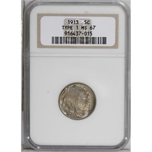 <B>1913<5C> Type One MS67 NGC.</B></I> An outstanding Superb Gem with an incredible strike that brings out even the tiniest details. The lovely luster and seemingly immaculate surfaces enhance this one-year type coin's immense appeal.