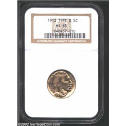 1913 5C Type Two MS65 NGC. While not fully struck in the centers, the surfaces are bright, lustrous, and carefully preserved. A lovely first year Gem that has a hint of apricot color. Important notice: We expect to be auctioning lots at the rate of 200-250 per hour. Sometimes eBay Premier live bid software cannot keep up with that pace, so we strongly recommend that you place a realistic proxy bid now as insurance to avoid disappointment. Also please note that all Heritage/CAA lots purchased through eBay Premier carry a 20% Buyer's Premium. Please make sure you read the Terms and Conditions.