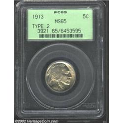 1913 5C Type Two MS65 PCGS. Nicely struck except for the date, which is in low relief but is fully l