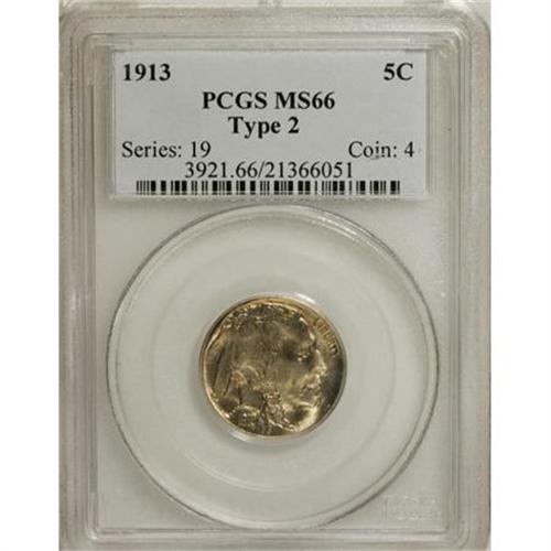 1913 5C Type Two MS66 PCGS. The bright satiny surfaces
