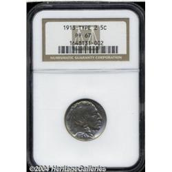 <B>1913<5C> Type Two PR67 NGC.</B></I> In a probable effort to increase the desirability and, hence, the survivability of the proof Buffalo Nickel, the Philadelphia Mint took greater care in the manufacture of the Type Two 1913 production than it had for the Type One issue. However, the collecting public was already disenchanted with the proof Nickels of 1913, and the Mint's workmanship for the Type Two was not superior enough to force a significant change in public opinion. As a result, many of the 1,514 proof 1913 Type Two Nickels were likely melted as unsold, a fate that explains the current rarity of this issue.<BR> The present representative is exceptionally well preserved with no outwardly distracting blemishes. The already memorable eye appeal benefits even further from target-like gold, powder-blue, lilac, and champagne toning that is a little more vivid on the obverse. Fully brought up with broad borders and an unmistakable satin texture. Accuracy alone compels us to mention a few trivial, barely noticeable flyspecks over the lower reverse. <BR><BR><B>Important notice:</B> Heritage usually auctions material at the rate of 200-250 lots per hour. On some occasions eBay Live bid software or the Internet may not be able to keep up with the pace of the auction. We recommend placing a realistic absentee bid now as insurance to avoid disappointment. Occasionally the auctioneer may eliminate or reject an eBay Live bid, and the auctioneer may also reopen a lot after the close of the eBay live bidding (usually because we missed an audience bid), and may reject your bid even if it shows you as the winning bidder. By bidding via eBay Live, you agree that Heritage may award the lot to another bidder at its sole discretion under the circumstances described above or any other reasonable circumstances. Since eBay bids are not shown to us until we open the lot on the floor, we treat those bids just like floor bids. In most cases the floor responds before the eBay bid is presented to us, due to Internet lag time, so for consistency we have made it a policy that floor bids are always considered first over tie eBay live bids. Also please note that all Heritage lots purchased through eBay Live carry a 20% Buyer's Premium. Please make sure you read the Terms and Conditions before you bid. </span></font></tr></table></td></tr></table>