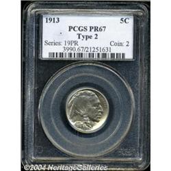 <table><tbody><tr><td><table> <TR><TD width="100%"><TABLE cellSpacing=1 cellPadding=3 width="100%" border=0><TBODY><TR><TD width="100%" bgColor=#79735c><FONT face=arial color=#ffffff size=3><B>Description</B> </FONT></TD></TR><TR><TD width="100%" bgColor=#ffffff><FONT face=arial size=2><B>1913 5C Type Two PR67 PCGS.</B></I> This is a wonderful proof example of this overlooked issue in the matte proof series. The obverse has a light, even golden patina while the reverse shows a cool, ice-blue coloration. While proofs are supposed to be fully struck, it is always remarkable to see the strength of strike on matte proofs, and it is an element that deserves comment. </FONT></TD></TR></TBODY></TABLE></TD></TR></TBODY></TABLE><BR><A name=PricesRealized></A><TABLE cellSpacing=0 cellPadding=0 width="100%" bgColor=#000000 border=0><TBODY><TR><TD width="100%"><TABLE cellSpacing=1 cellPadding=3 width="100%" border=0><TBODY><TR><TD width="100%" bgColor=#79735c><A name=PR><FONT face=arial color=#ffffff size=3><B>Previous Prices from Heritage Auctions</B> </FONT></A></TD></TR><TR><TD bgColor=#f6f6ed><TABLE cellSpacing=0 cellPadding=0 width="100%" border=1><TBODY><TR><TD align=middle width="33%"><B>Date</B></TD><TD align=middle width="33%"><B>Service</B></TD><TD align=middle width="33%"><B>Price</B></TD></TR><TR bgColor=whitesmoke><TD width="33%"><B>09/20/2003</B></TD><TD width="33%">PCGS</TD><TD width="33%">$5,405.00</TD></TR><TR bgColor=whitesmoke><TD width="33%"><B>01/11/2003</B></TD><TD width="33%">PCGS</TD><TD width="33%">$4,312.50</TD></TR><TR bgColor=whitesmoke><TD width="33%"><B>07/30/2002</B></TD><TD width="33%">NGC</TD><TD width="33%">$3,220.00</TD></TR><TR bgColor=whitesmoke><TD width="33%"><B>08/19/1995</B></TD><TD width="33%">NGC</TD><TD width="33%">$2,365.00</TD></TR><TR bgColor=whitesmoke><TD width="33%"><B>01/01/1995</B></TD><TD width="33%">NGC</TD><TD width="33%">$3,080.00</TD></TR><TR bgColor=whitesmoke><TD width="33%"><B>01/01/1997</B></TD><TD width="33%">PCGS</TD><TD width="33%">$1,760.00</TD></TR></TBODY></TABLE></TD></TR><TR><TD bgColor=#ffffff><FONT face=arial size=1 ?>PLEASE NOTE: All prices realized reflect the final hammer price PLUS the buyer's premium in auctions that charge a buyer's premium. Each item has a notation at the top of the listing indicating whether that lot included a buyer's premium. Example: A item that sells with a final hammer price of $100 and a 20% buyer's premium will display with a price realized of $120. All information listed is intended to be as accurate as possible, but errors are possible. Please use this guide carefully and inform us of any inaccuracies. </FONT></TD></TR></TBODY></TABLE></TD></TR></TBODY></TABLE><BR><TABLE cellSpacing=0 cellPadding=0 width="100%" bgColor=#000000 border=0><TBODY><TR><TD width="100%"><TABLE cellSpacing=1 cellPadding=3 width="100%" border=0><TBODY><TR><TD width="100%" bgColor=#79735c colSpan=6><FONT face=arial color=#ffffff size=3><B>Price Guide*</B> </FONT></TD></TR><TR bgColor=#f6f6ed><TD align=middle><B>Grade</B> </TD><TD align=middle><B>Coin World<BR>(Trends)</B> </TD><TD align=middle><B>Numismedia<BR>Retail</B> </TD><TD align=middle><B>Numismedia<BR>Wholesale</B> </TD><TD align=middle><B>Coin<BR>Universe</B> </TD><TD align=middle><B>Heritage<BR>Value Index</B> </TD></TR><TR bgColor=#ffffff><TD align=middle>66</TD><TD align=right>---</TD><TD align=right>---</TD><TD align=right>$2,100.00</TD><TD align=right>$2,900.00</TD><TD align=right>$2,142.75</TD></TR><TR style="FONT-WEIGHT: bold" bgColor=#cccfdd><TD align=middle>67</TD><TD align=right>---</TD><TD align=right>---</TD><TD align=right>$3,775.00</TD><TD align=right>$5,200.00</TD><TD align=right>$4,063.33</TD></TR><TR bgColor=#ffffff><TD align=middle>68</TD><TD align=right>---</TD><TD align=right>---</TD><TD align=right>$5,750.00</TD><TD align=right>---</TD><TD align=right>---</TD></TR><TR bgColor=#ffffff><TD colSpan=6><FONT size=1>*All information listed is intended to be as accurate as possible, but errors are possible. No item may be returned or refused based on this information which is provided as a service to our customers. You should contact each pricing source directly to determine the accuracy of this information. </FONT></TD></TR></TBODY></TABLE></TD></TR></TBODY></TABLE><BR><TABLE cellSpacing=0 cellPadding=0 width="100%" bgColor=#000000 border=0><TBODY><TR><TD width="100%"><TABLE cellSpacing=1 cellPadding=3 width="100%" border=0><TBODY><TR><TD width="100%" bgColor=#79735c><FONT face=arial color=#ffffff size=3><B>Population Guide</B> </FONT></TD></TR><TR bgColor=#ffffff><TD align=middle><!-- Begin Output of Population Grid--><TABLE cellSpacing=0 cellPadding=0 width="100%" border=0><TBODY><TR><TD vAlign=center><TABLE cellSpacing=0 width="100%" border=1 cellsadding="3"><TBODY><TR><TD vAlign=center><TABLE cellSpacing=0 cellPadding=3 width="100%" border=1><TBODY><TR><TD vAlign=center align=middle bgColor=#f0f1e8 colSpan=2 <CENTER><FONT face=Arial size=2><B>PCGS Pop </B></FONT><CENTER></CENTER></TD><TD vAlign=center align=middle bgColor=#f0f1e8 colSpan=2><CENTER><FONT face=Arial size=2><B>NGC Pop</B></CENTER></FONT></TD></TR><TR><TD vAlign=center><FONT face=Arial size=2>(67)</FONT> </TD><TD vAlign=center align=right><FONT face=Arial size=2>42</FONT> </TD><TD vAlign=center><FONT face=Arial size=2>(67)</FONT> </TD><TD vAlign=center align=right><FONT face=Arial size=2>33</FONT> </TD></TR><TR><TD vAlign=center><FONT face=Arial size=2>(>67)</FONT> </TD><TD vAlign=center align=right><FONT face=Arial size=2>1</FONT> </TD><TD vAlign=center><FONT face=Arial size=2>(>67)</FONT> </TD><TD vAlign=center align=right><FONT face=Arial size=2>4</FONT> </TD></TR></TBODY></TABLE></TD></TR></TBODY></TABLE></TD></TR></TBODY></TABLE><!-- End Output of Population Grid--></TD></TR></TBODY></TABLE></TD></TR></TBODY></TABLE><BR><TABLE cellSpacing=0 cellPadding=0 width="100%" bgColor=#000000 border=0><TBODY><TR> <font color='#000000'><span style='background-color: #FFFFFF'><td bgcolor='