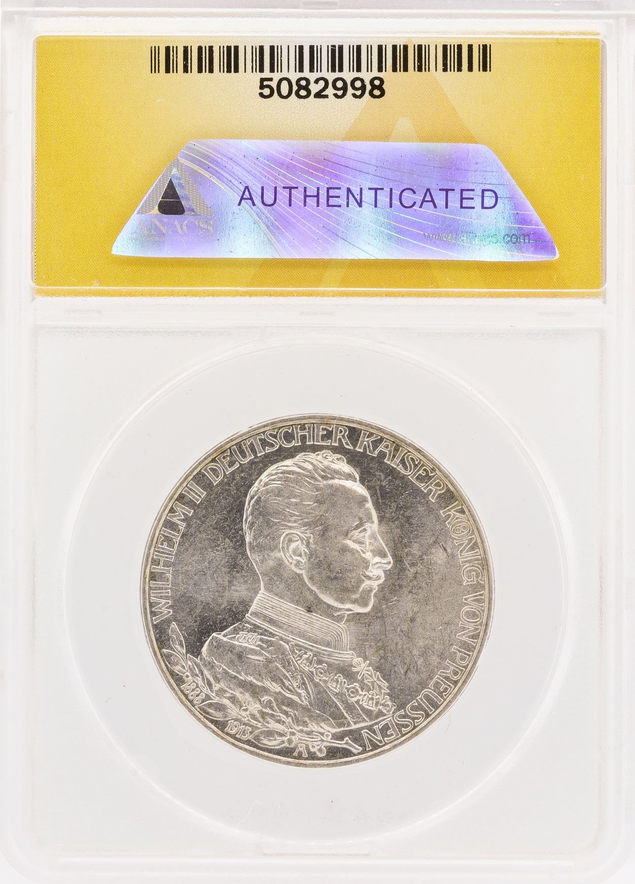 One 1913-A Germany-Prussia 25 Years William II 3 Mark Coin ANACS MS62.