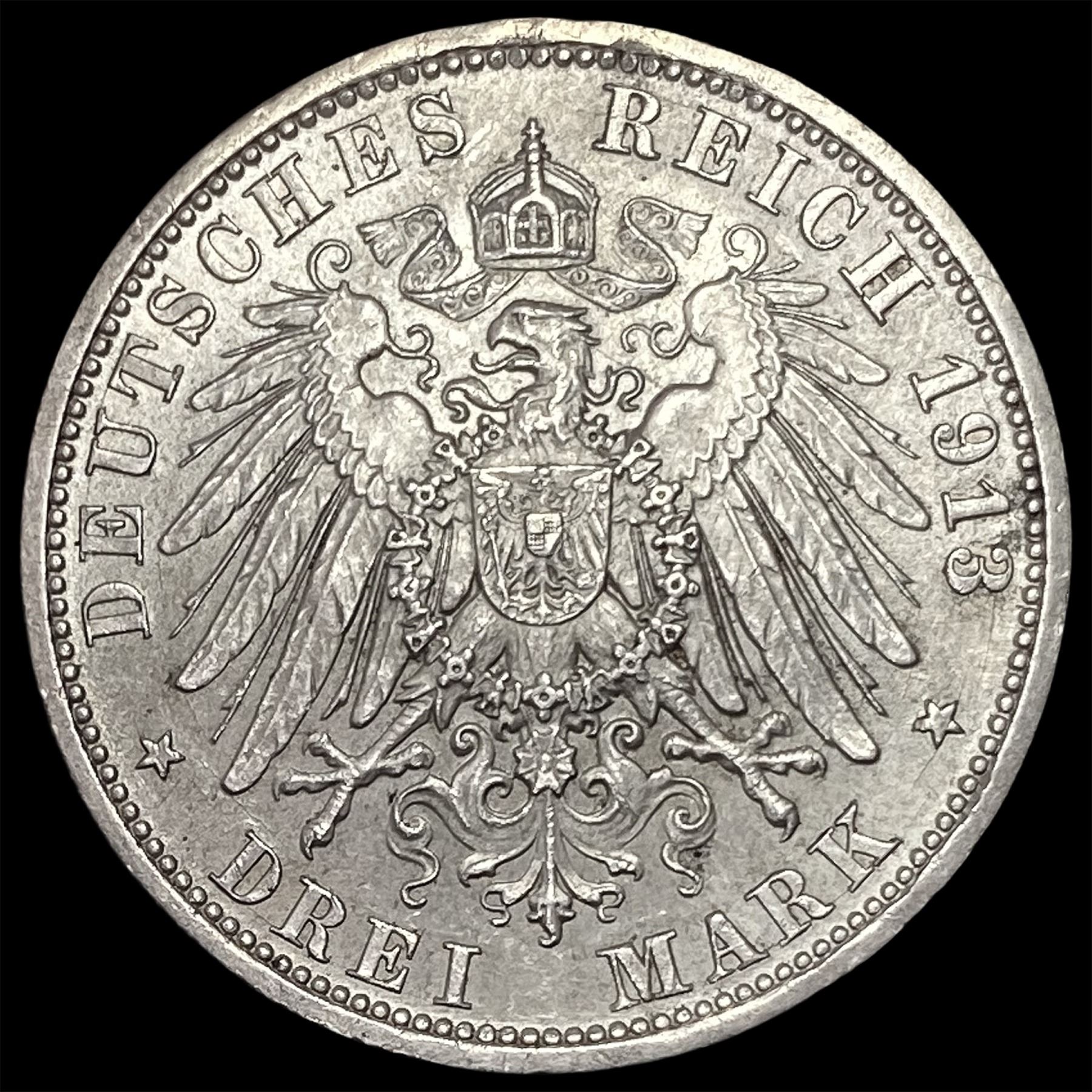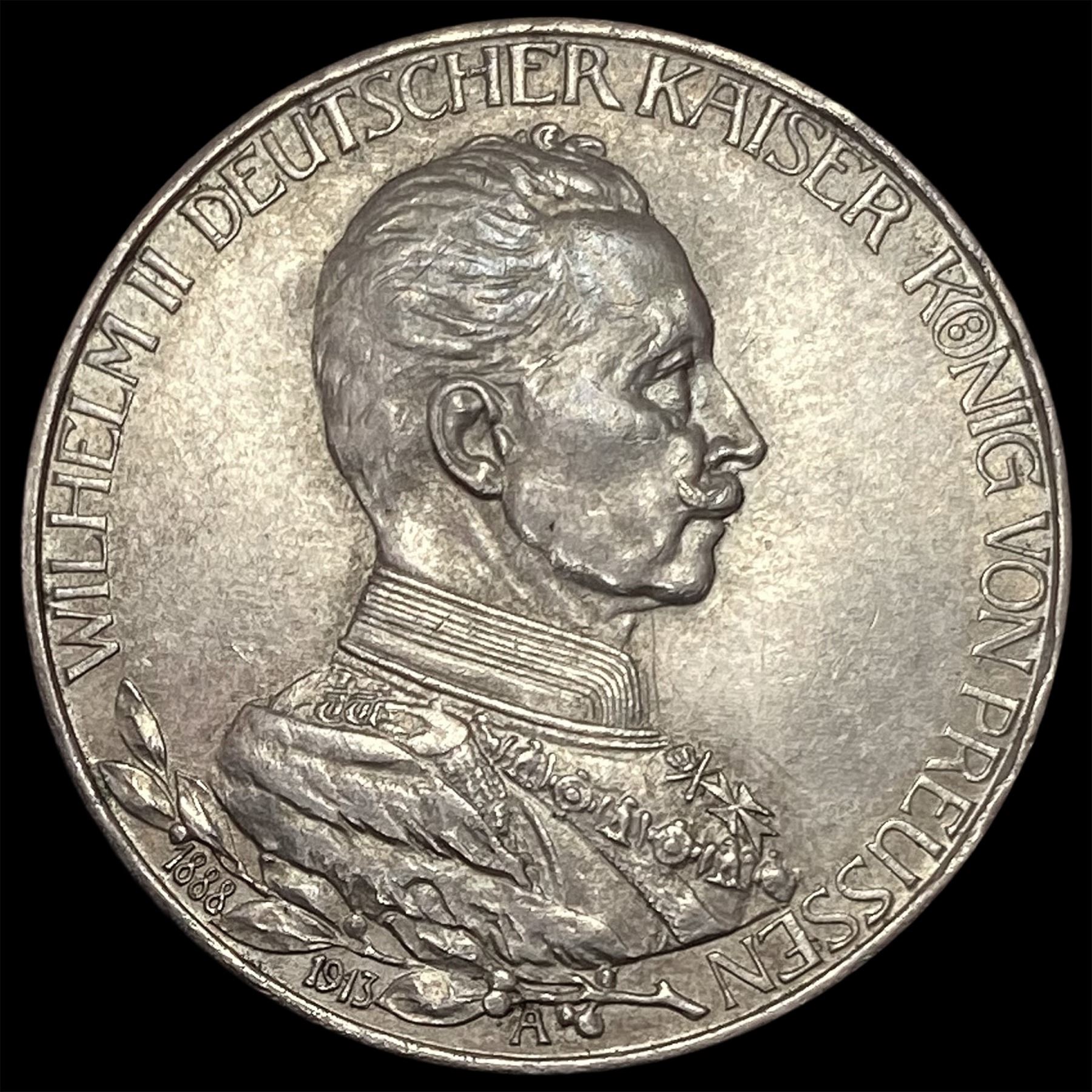 1913-A Germany William II Silver 3 Reichsmark UNCIRCULATED
