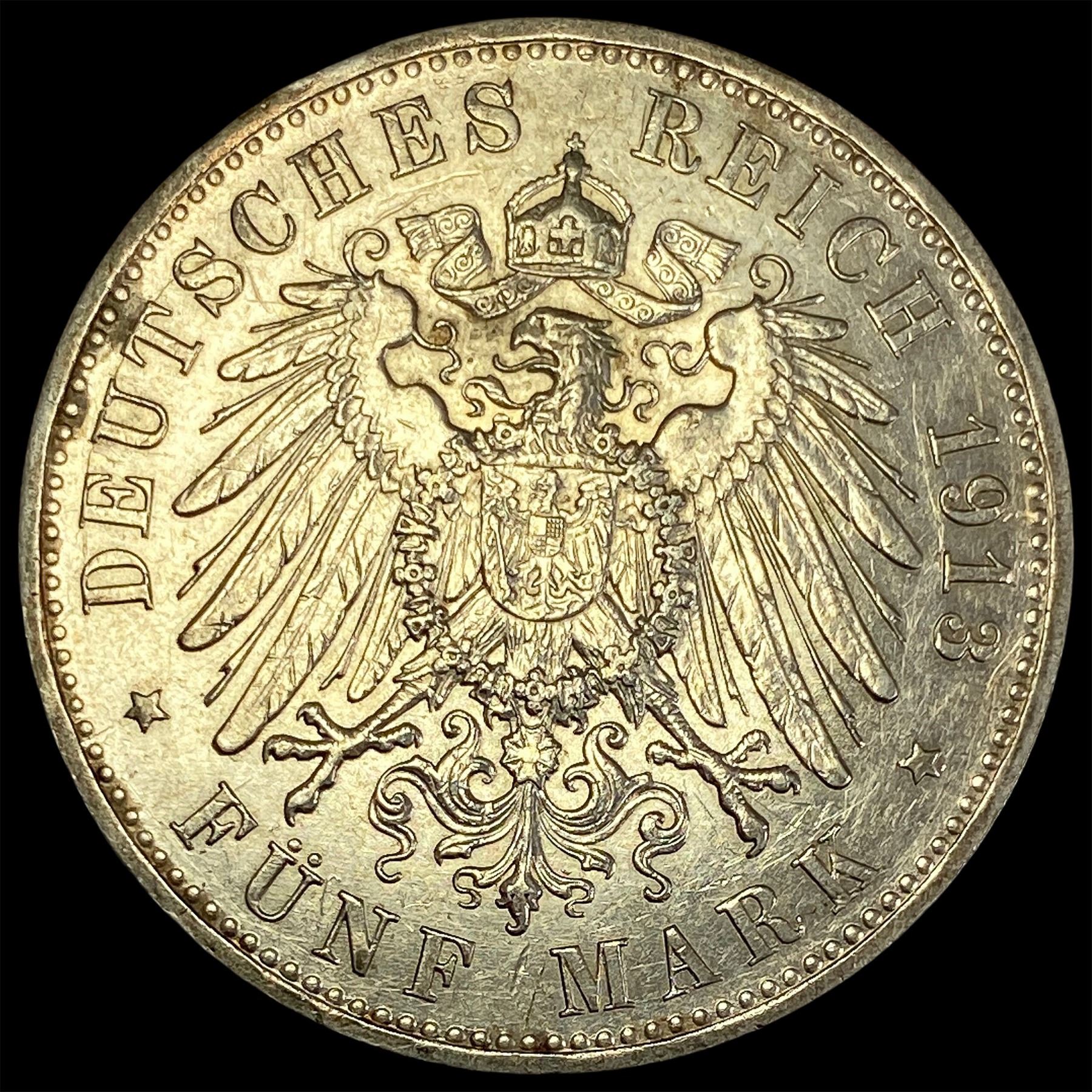 1913 A Prussia Silver 5 Reichsmark CLOSELY UNCIRCULATED