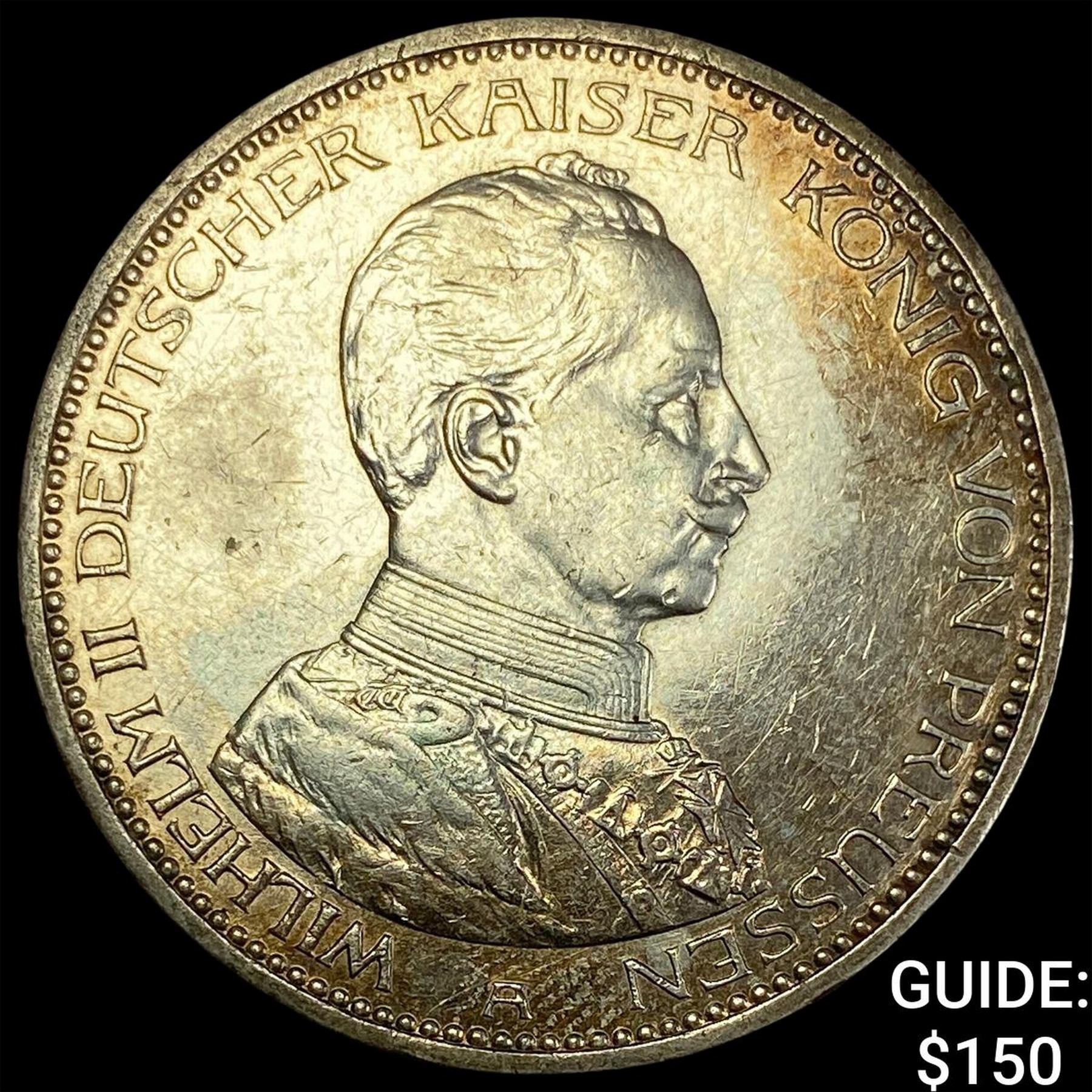 1913 A Prussia Silver 5 Reichsmark CLOSELY UNCIRCULATED
