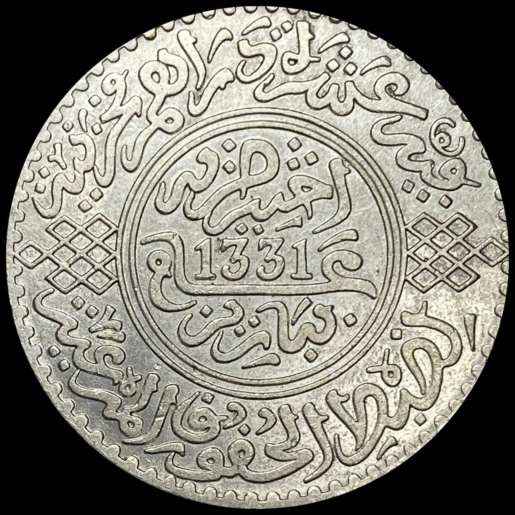 1913 AH 1331 Morocco Silver Rial UNCIRCULATED