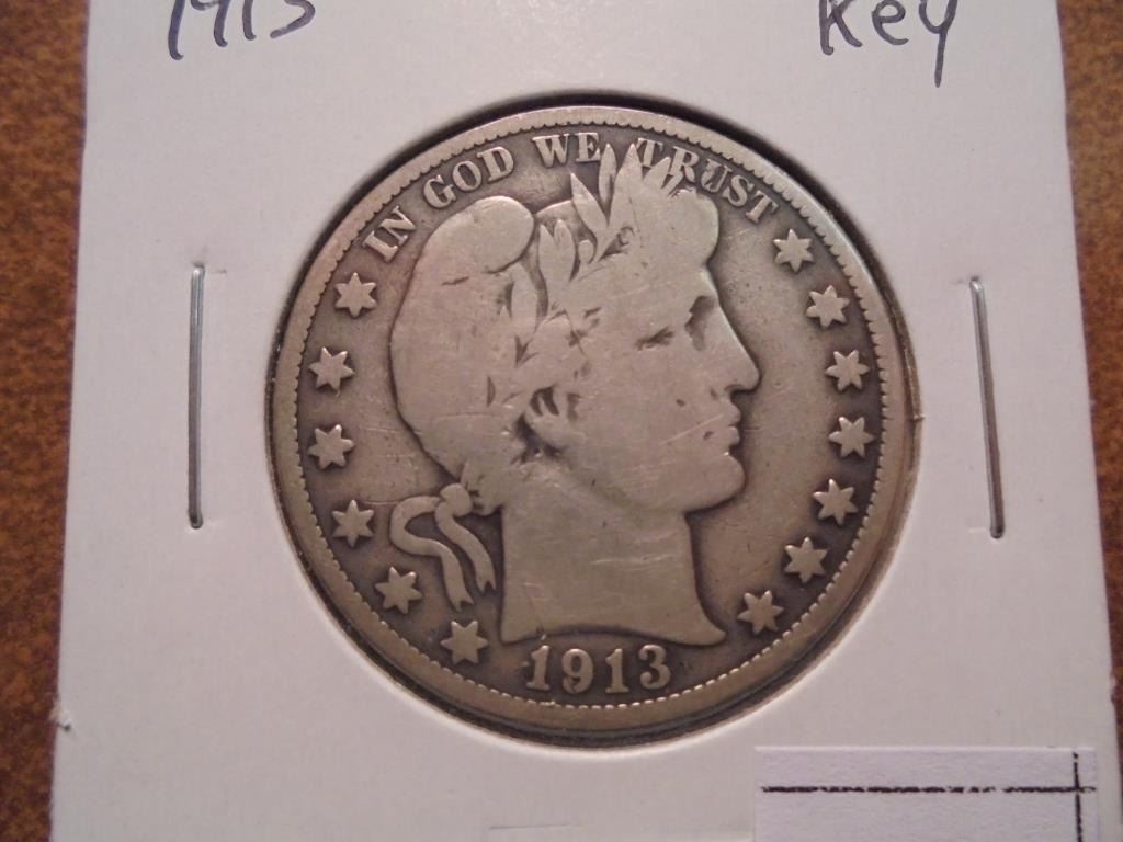 1913 BARBER HALF DOLLAR VERY GOOD KEY DATE